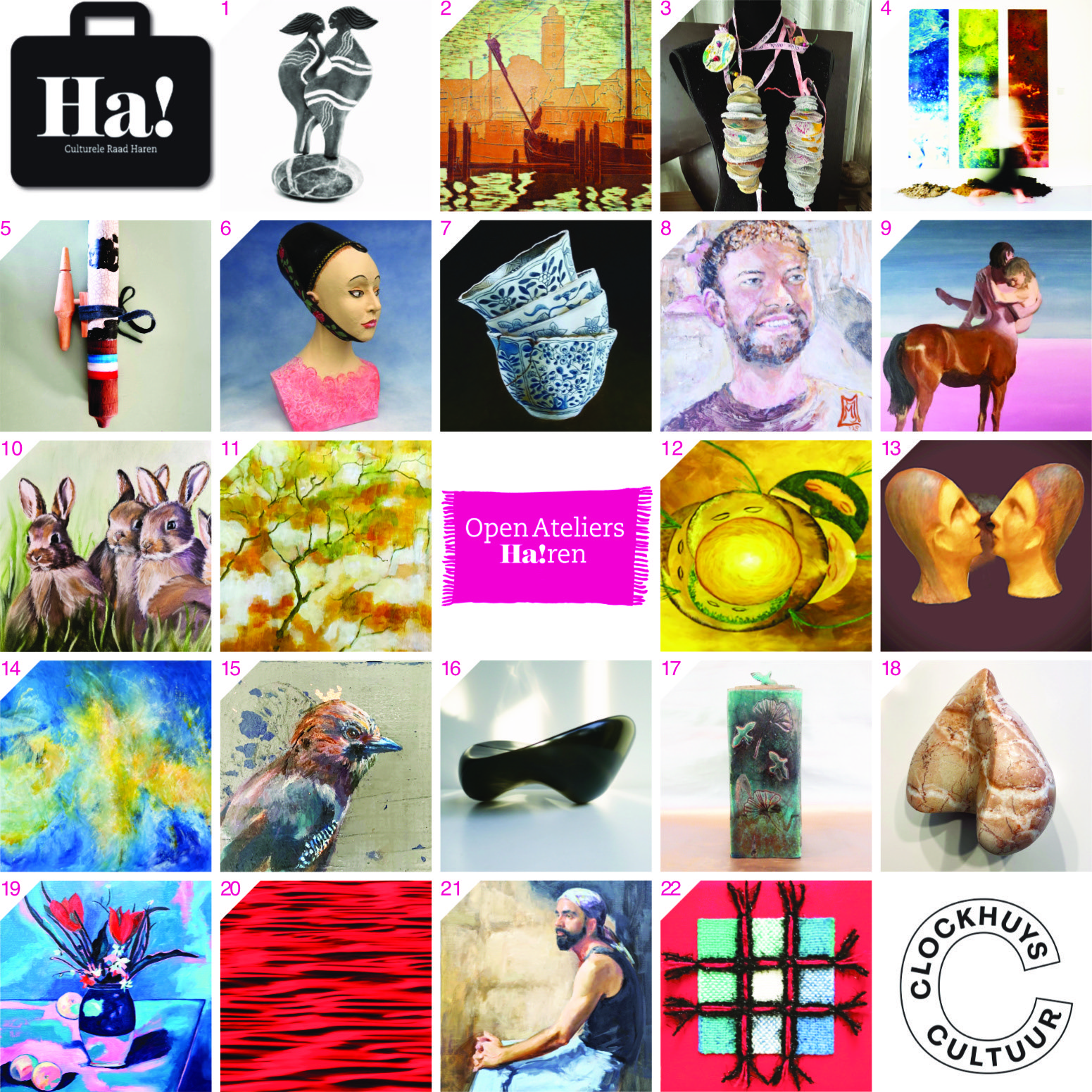 In Clockhuys Cultuur is dan ook de folder beschikbaar, met een overzicht en een plattegrond waarop alle deelnemende kunstenaars staan aangegeven.